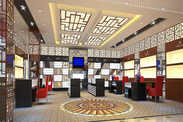 大廳:大廳是展現給客人最基本最實在的部分,各種眼鏡樣品都在這里展示給顧客,因此此處的精品裝修非常重要,也是提升一個眼鏡店身價的保障。大廳對于照明、色彩、鏡子的運用顯得相當重要,一般眼鏡店都使用白光照明,以透出眼鏡的質感,光亮的感覺也能體現出一種更舒適的購物氣氛。但也不宜太亮,同時在店頭、天花板、柜臺都應該考慮安裝滿足各自要求的照明器具。在色彩的搭配上,淺色眼鏡用深藍色襯托、深色眼鏡用白底來表現,都更符合文化消費的情調也能感受眼鏡的色彩和材質帶來的另類感。同時,鏡子的運用也很重要,能給人店面寬敞的錯覺,起到亮堂、開闊視野的作用。