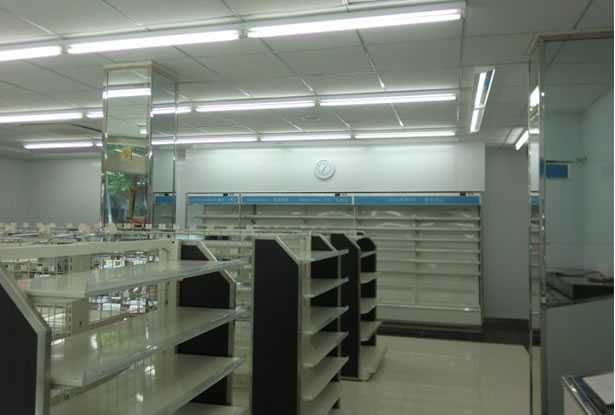 3.便利店裝潢一般要求低調。天、地、墻都采用純白色。而且純白色給人的感覺就是整潔、干凈,同時天、地、墻統一色調,會給人造成較大空間的視覺偏差。